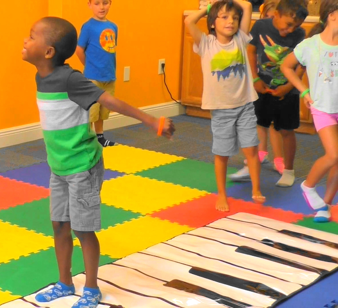Group creates a fun learning environment. Working together, students explore on and off the bench activities that include singing, instrument-playing, dancing and playing piano.